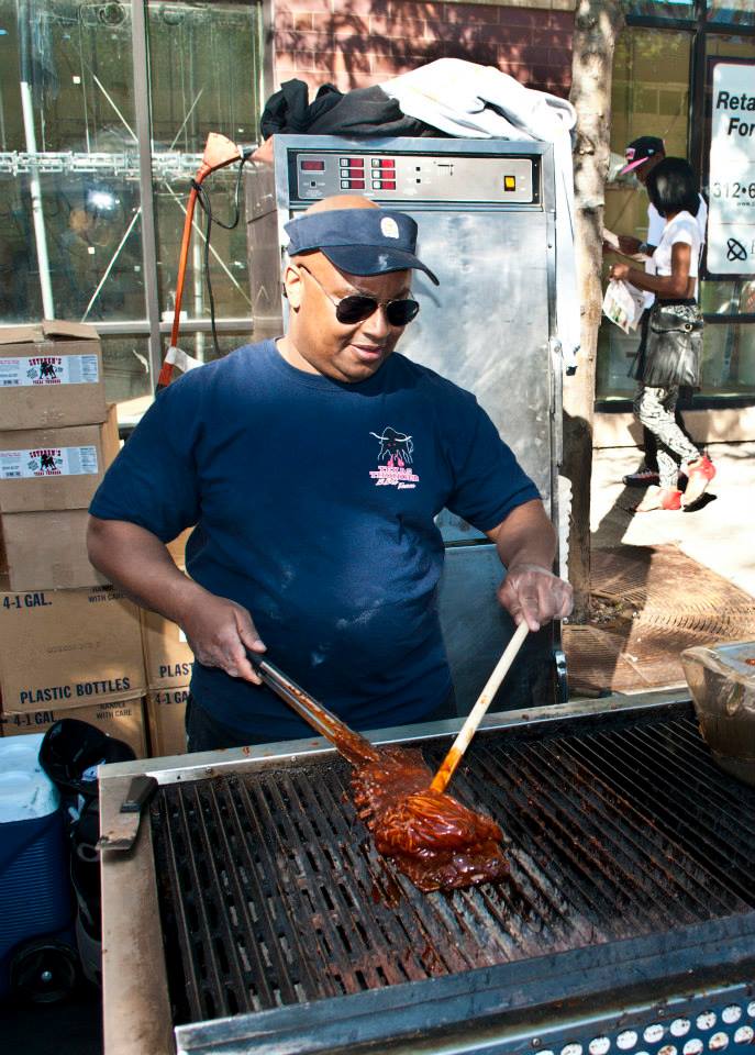 Percy preparing Surf & Turf Tacos with yummy lobster tails